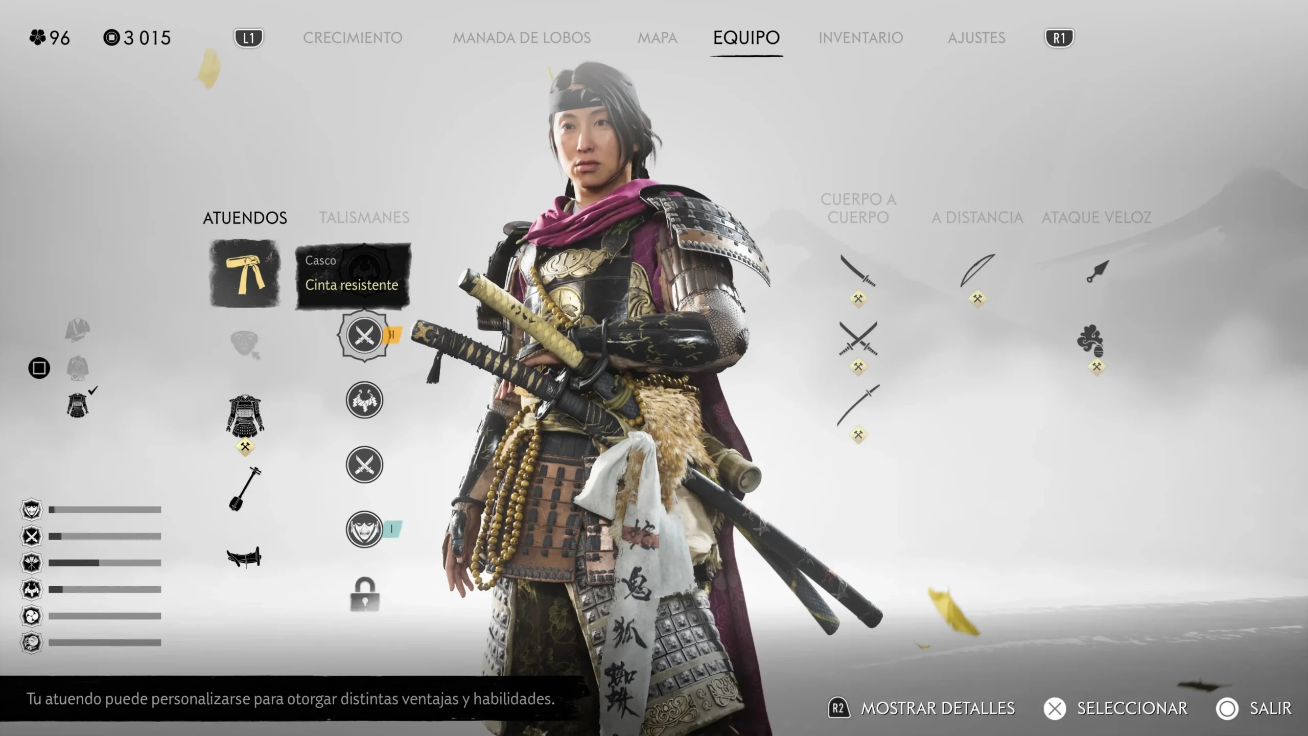 Según vayamos avanzando en el juego, iremos adquiriendo nuevas técnicas en el árbol de habilidades, aumentando así nuestras posibilidades de infiltración, entre otras cosas. Respecto a las armas, también contaremos con un número mucho mayor que en Tsushima. Cada una de ellas, tendrá sus pros y sus contras a la hora de usarlas, como por ejemplo las katanas dobles, que son muy rápidas y efectivas contra las lanzas. Además, podremos cambiar de arma al instante durante los combates.