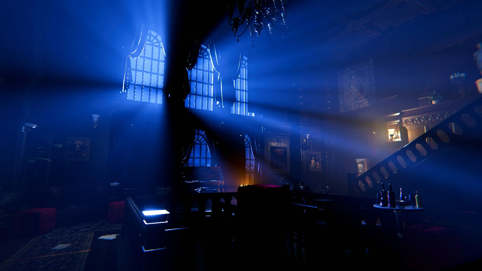 A nivel gráfico, el juego cumple dentro de su escala. La iluminación volumétrica y el uso de colores contrastados —el azul casi celestial frente al rojo infernal— dibujan un equilibrio entre lo místico y lo tecnológico. Los escenarios se mueven entre mansiones victorianas, hospitales en ruinas y laboratorios bañados en neón, con un fuerte sabor español que se cuela en patios interiores, texturas cerámicas y mobiliario clásico. Es una reinterpretación muy particular de la “Infernal Aesthetic”, más conceptual que explícita: no hay demonios de fuego, sino ruinas sagradas invadidas por la tecnología.