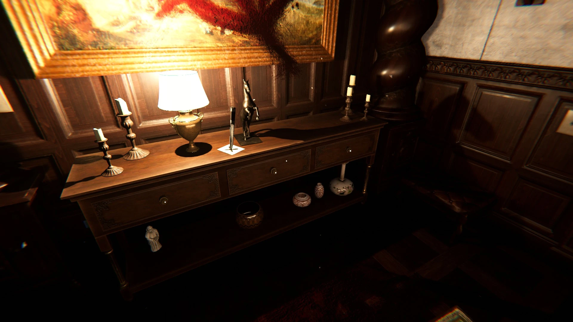 Los puzles están integrados en el entorno, pero tienden a ser bastante obvios, más funcionales que ingeniosos. Se basan principalmente en colocar objetos en lugares específicos, buscar llaves o interpretar pistas directas. Funcionan como pausas dentro del ritmo, momentos para respirar entre susto y susto, pero rara vez sorprenden o desafían. Más que quebrarte la cabeza, te permiten coger aire antes de volver a temer.