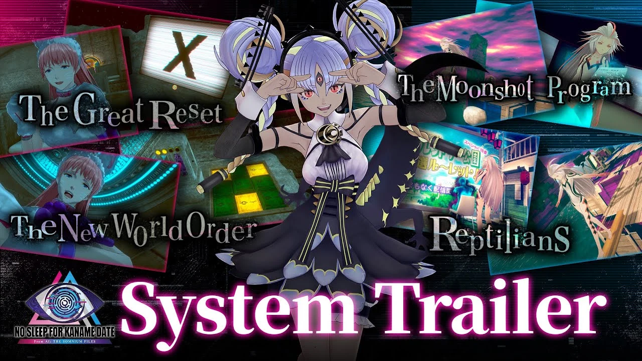 El System Trailer pone el foco en la estructura que define la experiencia de No Sleep For Kaname Date – From AI: The Somnium Files, articulada en tres tipos de secciones claramente diferenciadas. Por un lado, las fases de Investigación, centradas en el análisis de escenas, interrogatorios y recopilación de pistas; por otro, los ya característicos Somnium, donde el jugador se adentra en los sueños de sospechosos y testigos, enfrentándose a puzles simbólicos en entornos oníricos.