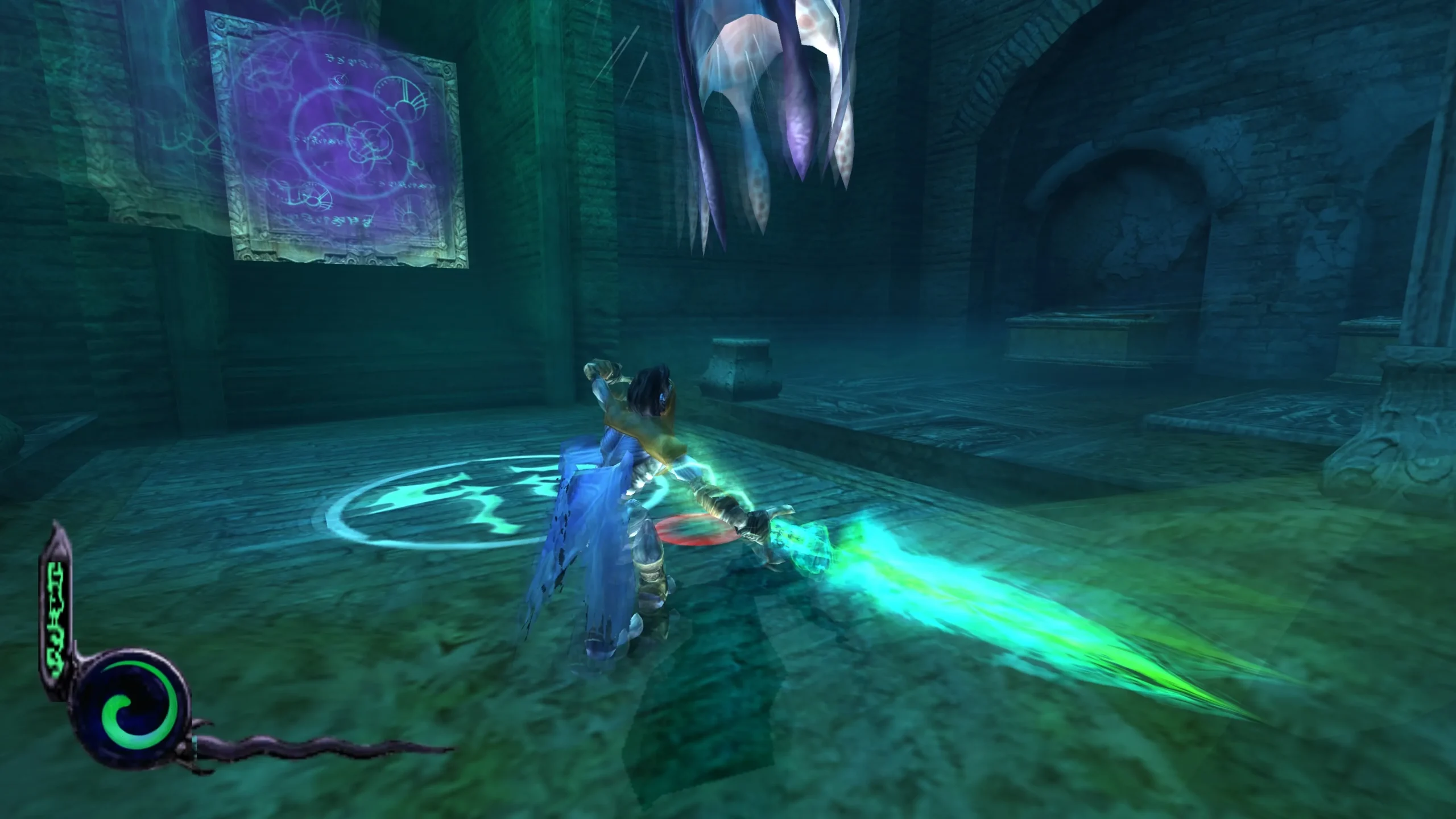 Por un lado, controlaremos al devorador de almas Raziel, con las mecánicas que disfrutamos en Soul Reaver 2 y por otro, al líder vampiro Kain, con las suyas propias heredadas de Blood Omen 2. Una cosa muy de agradecer es que tendremos dos seres muy poderosos que han ido ganando poder a medida que la saga avanzaba y cuyas habilidades prácticamente se conservan desde la última entrega. Esto choca con otros juegos como, por ejemplo, lo que le pasa a la buena de Samus Aran en casi todos los Metroid, que empieza con todo un arsenal de armas y habilidades, luego va, se tropieza y se le caen en una alcantarilla, pasándose el resto del juego recolectándolas de nuevo.