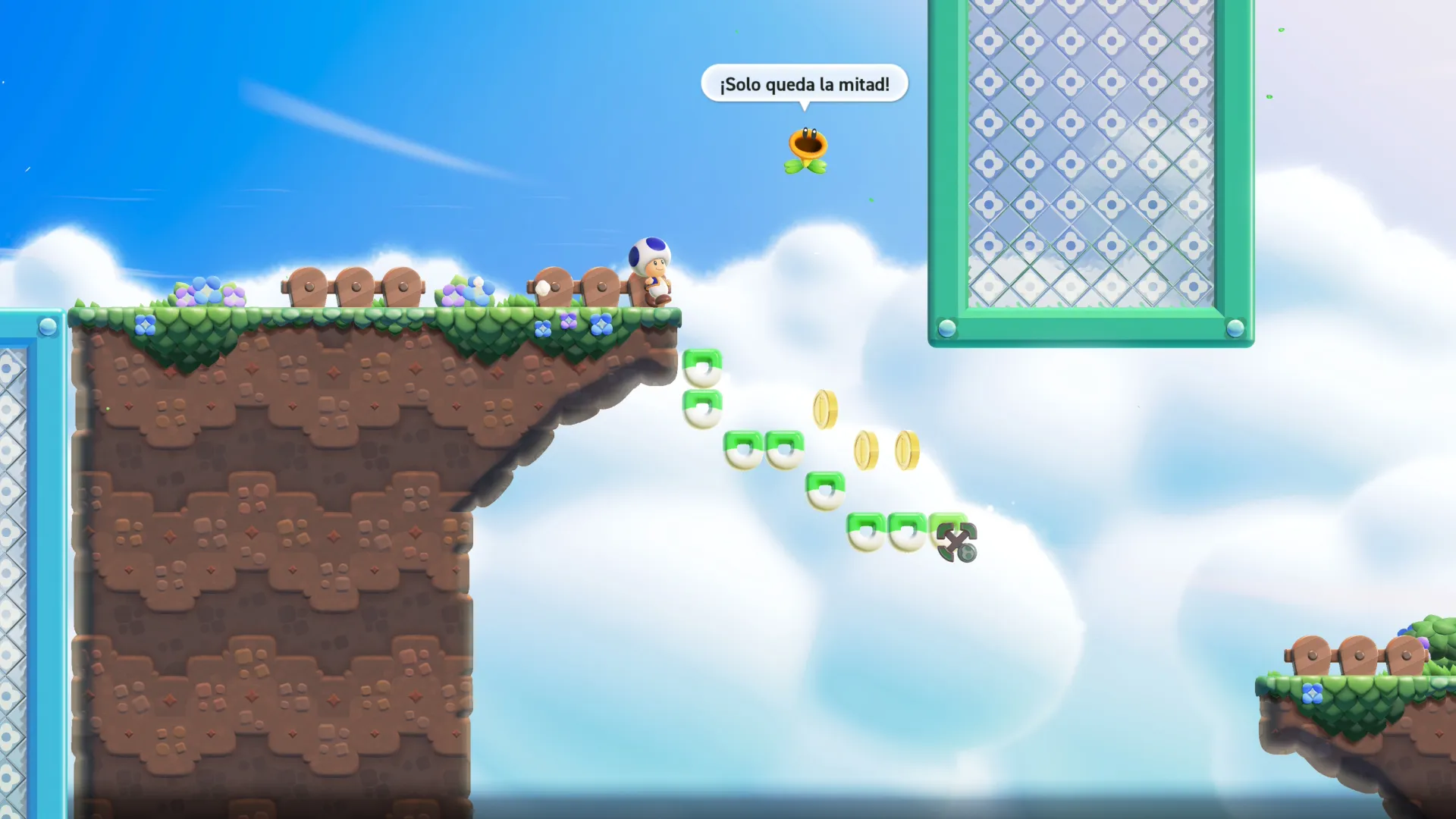 También tendremos la incorporación de un nuevo traje, el traje flor, que hace que lance pequeñas plataformas de flores en dirección vertical, ideal para atacar enemigos voladores. He de añadir que no me ha parecido una transformación útil o “jugosa”, me sigo quedando con el potenciador burbuja, la flor de fuego o similares.