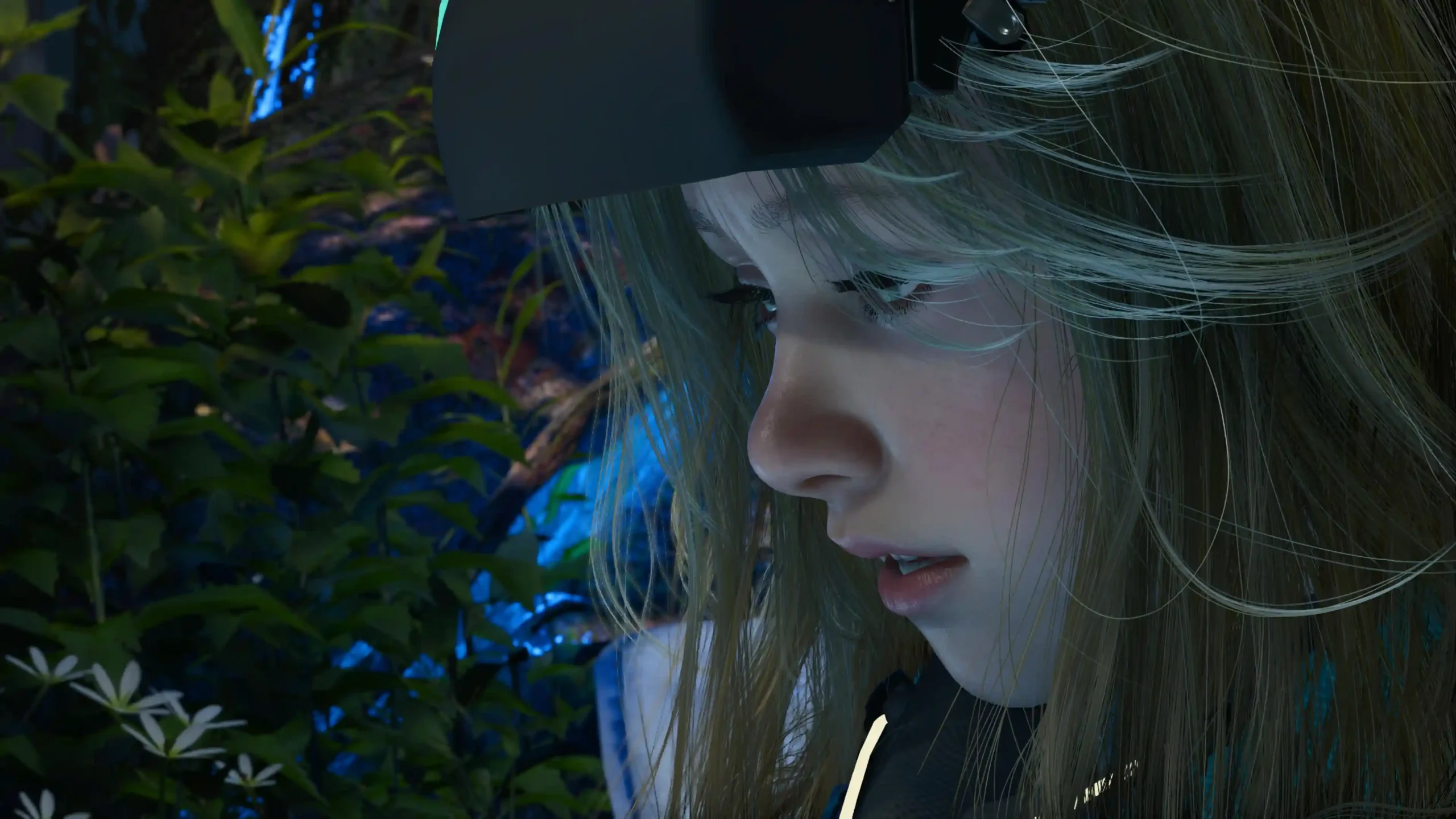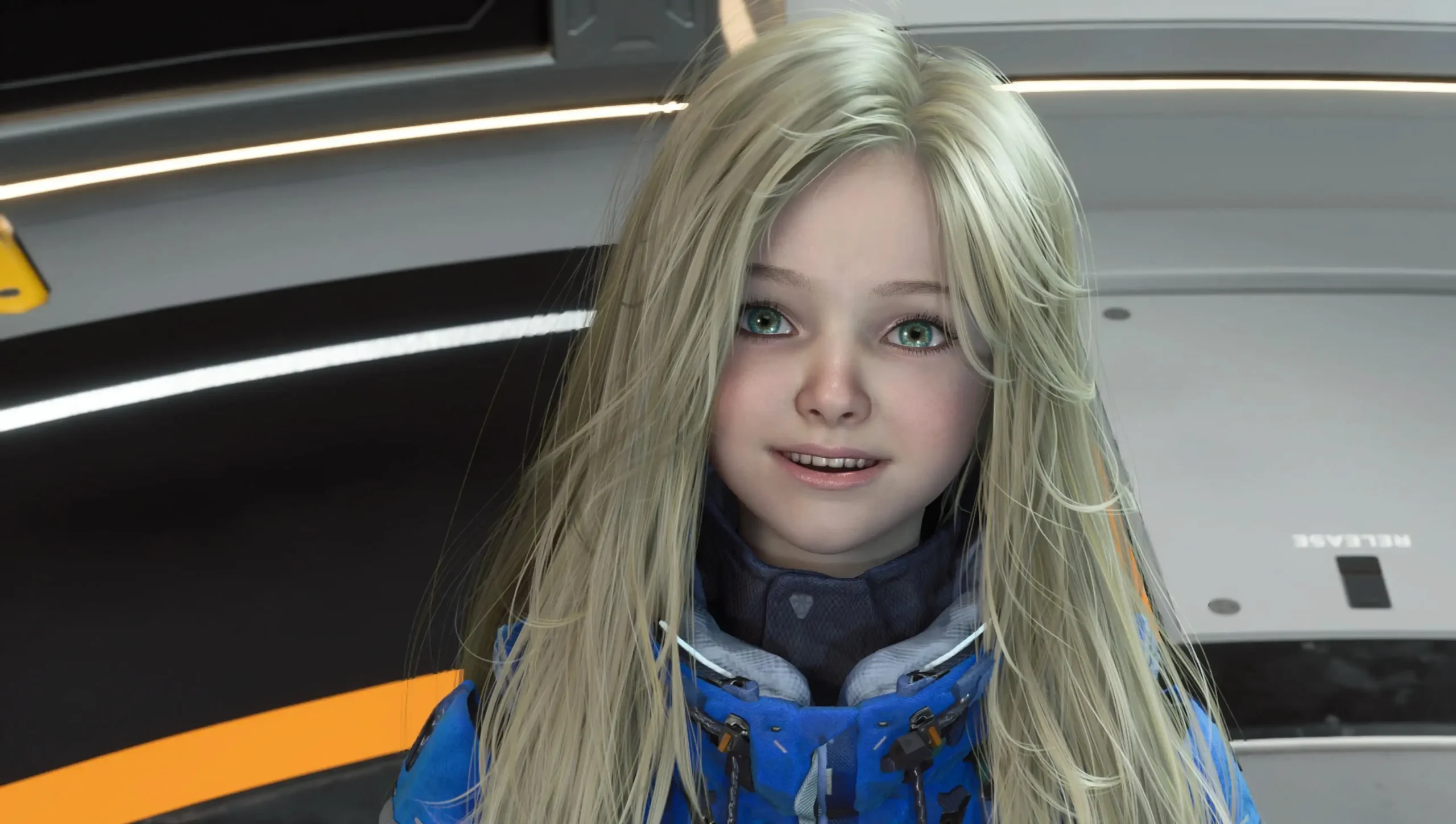 El tratamiento del cabello de la niña es, sencillamente, de escándalo. Cada mechón se renderiza con una individualidad física pasmosa; ver cómo se mueve con la baja gravedad o cómo reacciona a las luces ambientales es un espectáculo en sí mismo. Ya no vemos esa «masa» de pelo típica de los videojuegos, sino una estructura orgánica que parece tener vida propia.